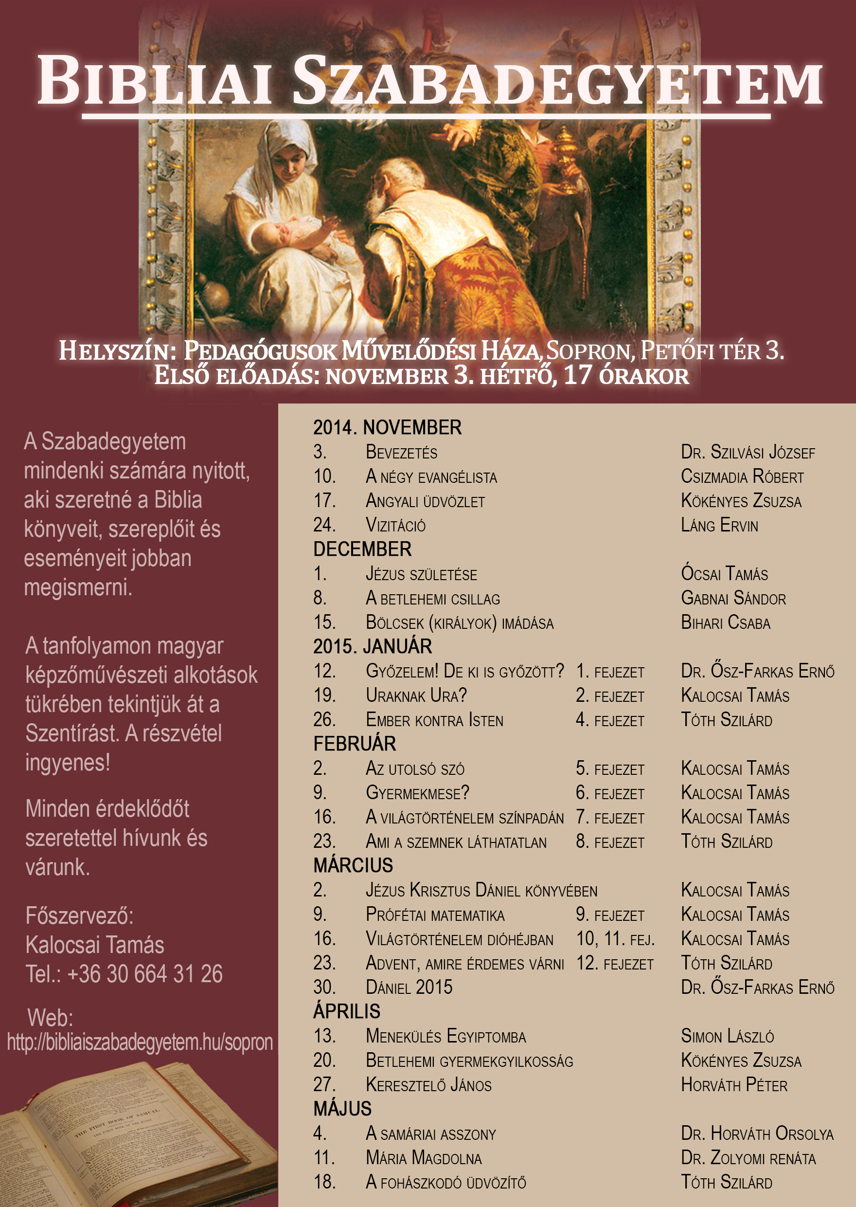 Elkezdődött a Bibliai Szabadegyetem 2014-2015-ös évfolyama A Bibliai Szabadegyetem 2014-2015-ös évfolyamának programja